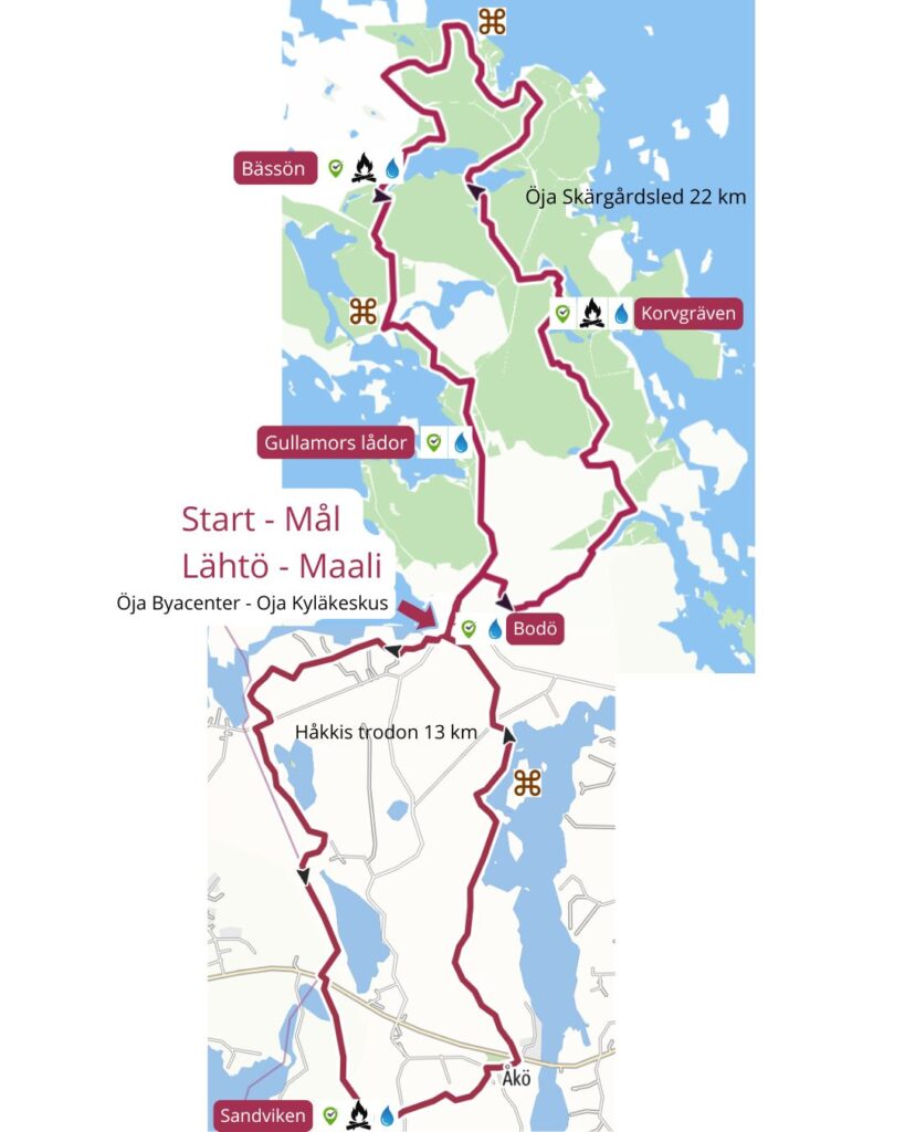 We are ten associations in Öja working together to organize this unique event. This year marks the eighth time we guide you over every stump and stone along the Öja Archipelago Trail! Choose your distance – 35 km, 22 km, 13 km, 7.5 km, or the whole family’s 2 km route!